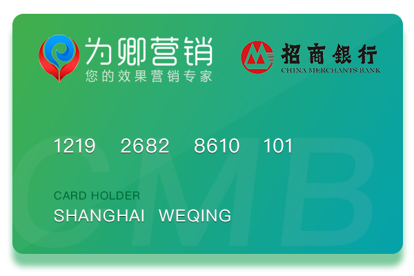 公司名称:上海为卿信息科技有限公司 开户银行:招商银行上海张江支行 银行帐号:1219 2682 8610 101